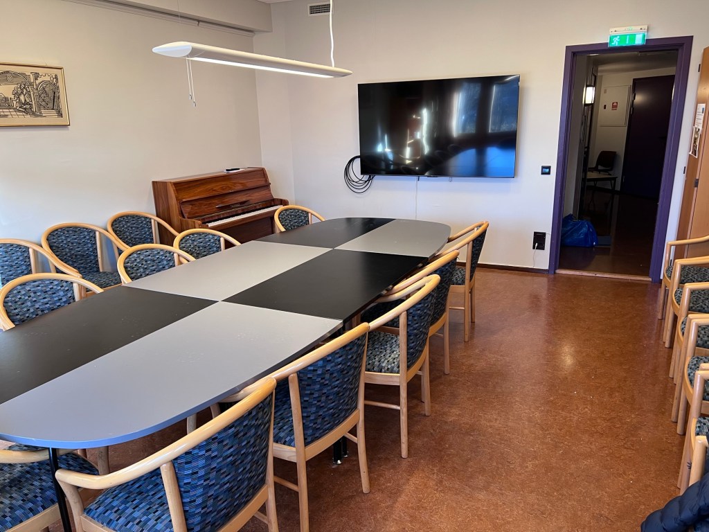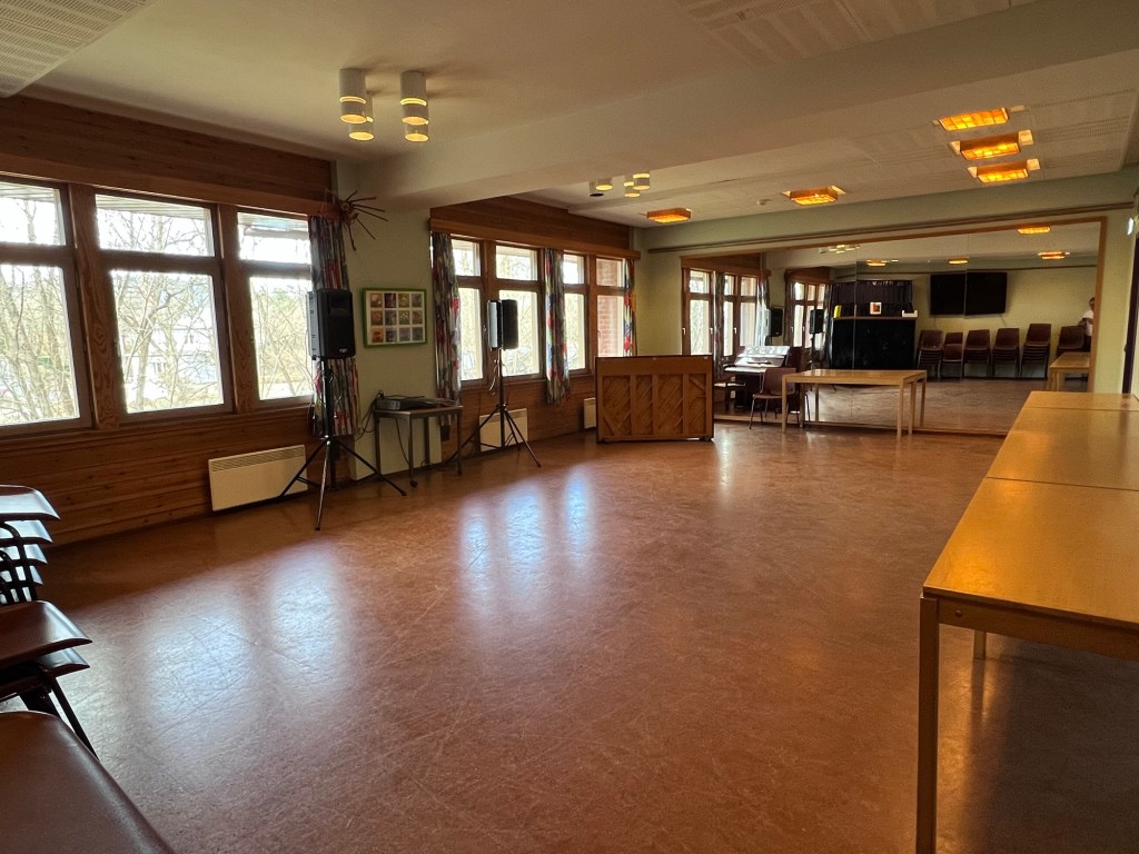 Bruksområde: godt egnet til middels forsamlinger som kor-, dans- og ulike øvelser, eller som vanlig møterom m 75 tommer TV.