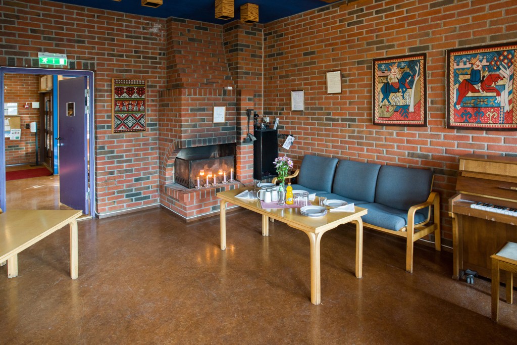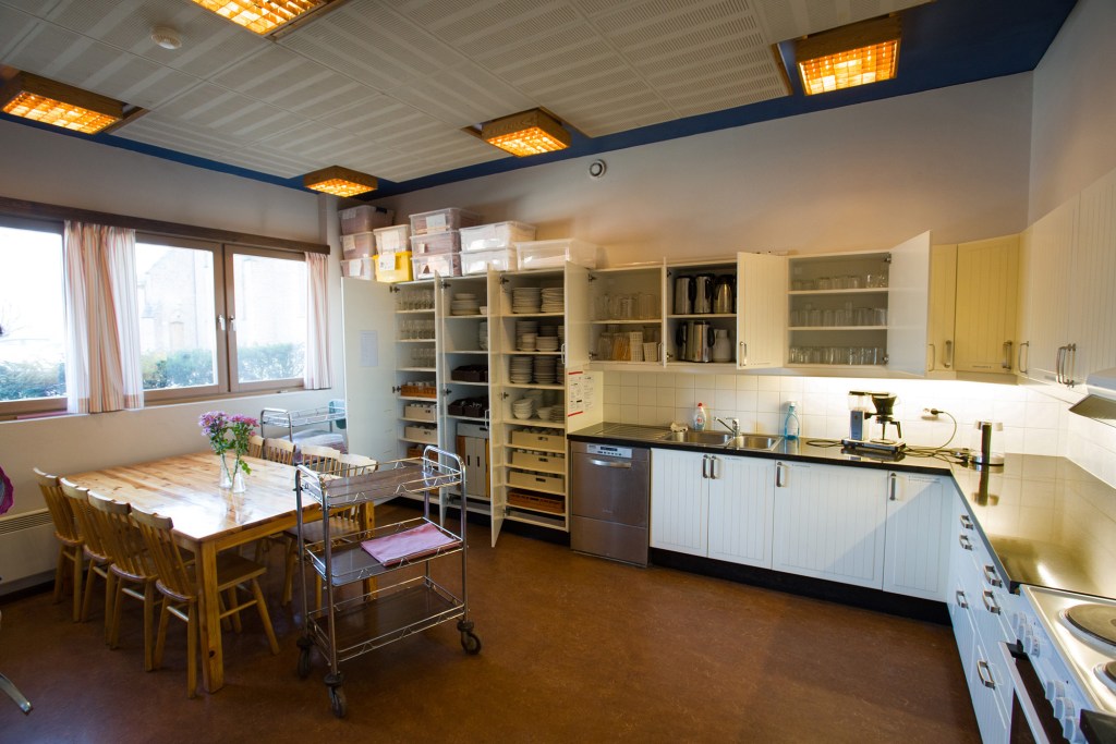 Kjøkkenet i menighetshuset er romslig og godt utstyrt med Kaffe- oppvask- maskin. Glass og service til flere enn 80.