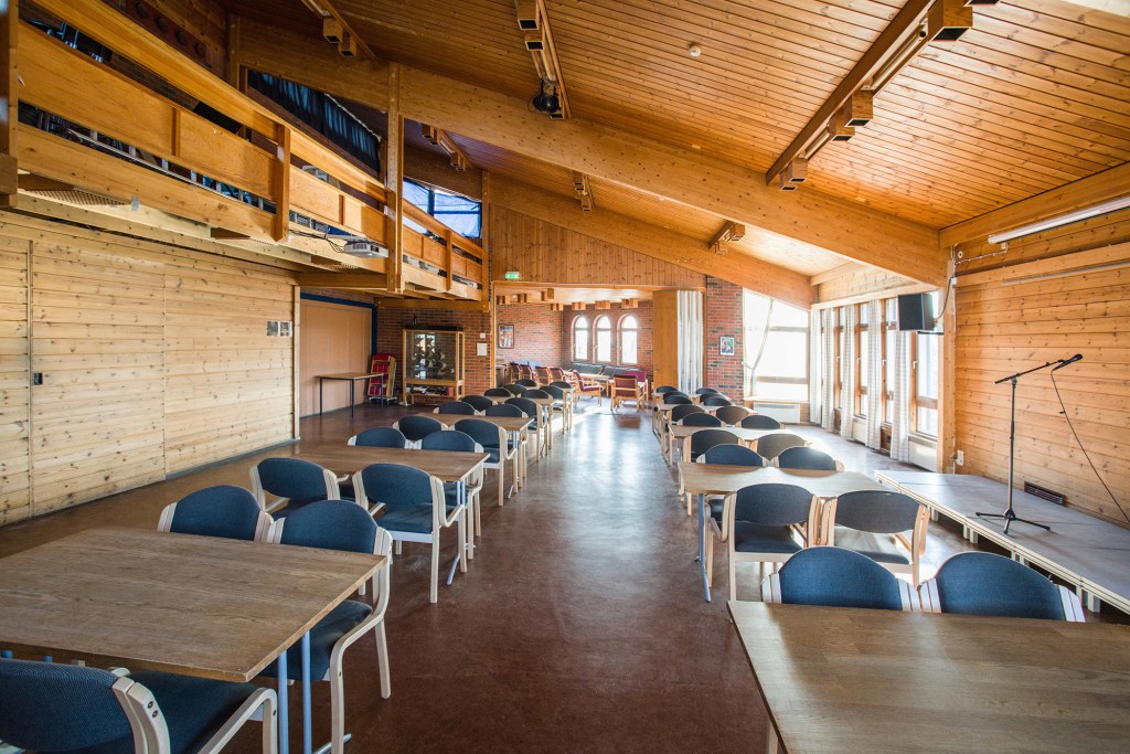 Bruksområde: En god sal som kan brukes med eller uten bord.