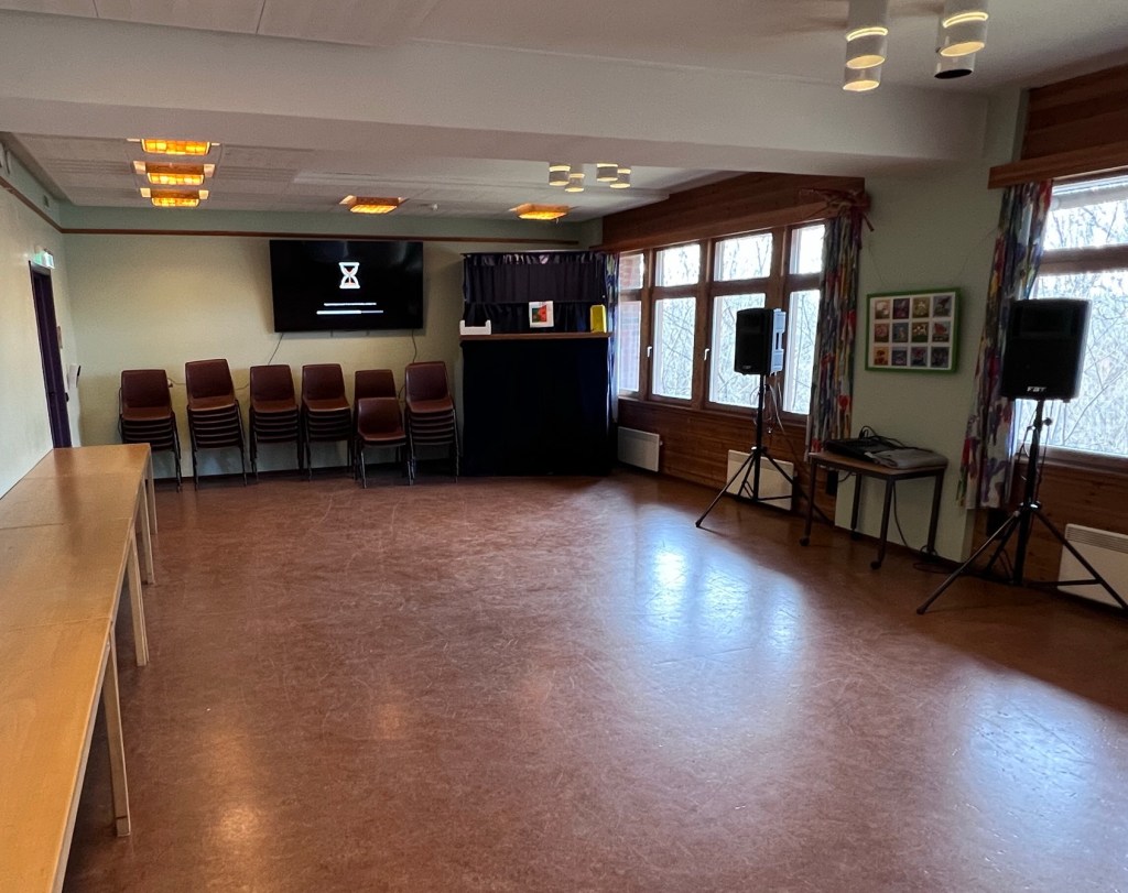 Grønt rom («Speilsalen») er en mellomstor sal (ca 60 m2) med plass til 30-40 personer. Den gir et rommelig inntrykk pga. speil som dekker den ene kortsida. Rommet kan brukes til mye; korøvelser, dans og ulike øvelses-programmer, eller som vanlig møterom med plass til ca. 30-40 personer. Rommet er utstyrt med storskjerm på 75 tommer, piano og PA-høyttaleranlegg.